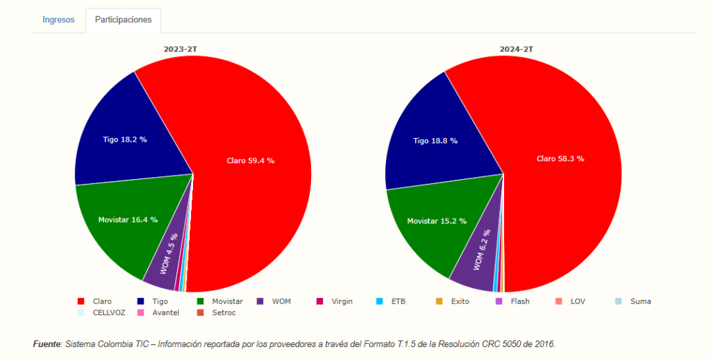 En comparación con el mismo periodo en 2023,las líneas o accesos de servicios móviles crecieron 7,8 por ciento y los accesos de Internet móvil,14,7 por ciento. Lo que representa un ingreso 3,1 billones de pesos,unos 704 millones de dólares.