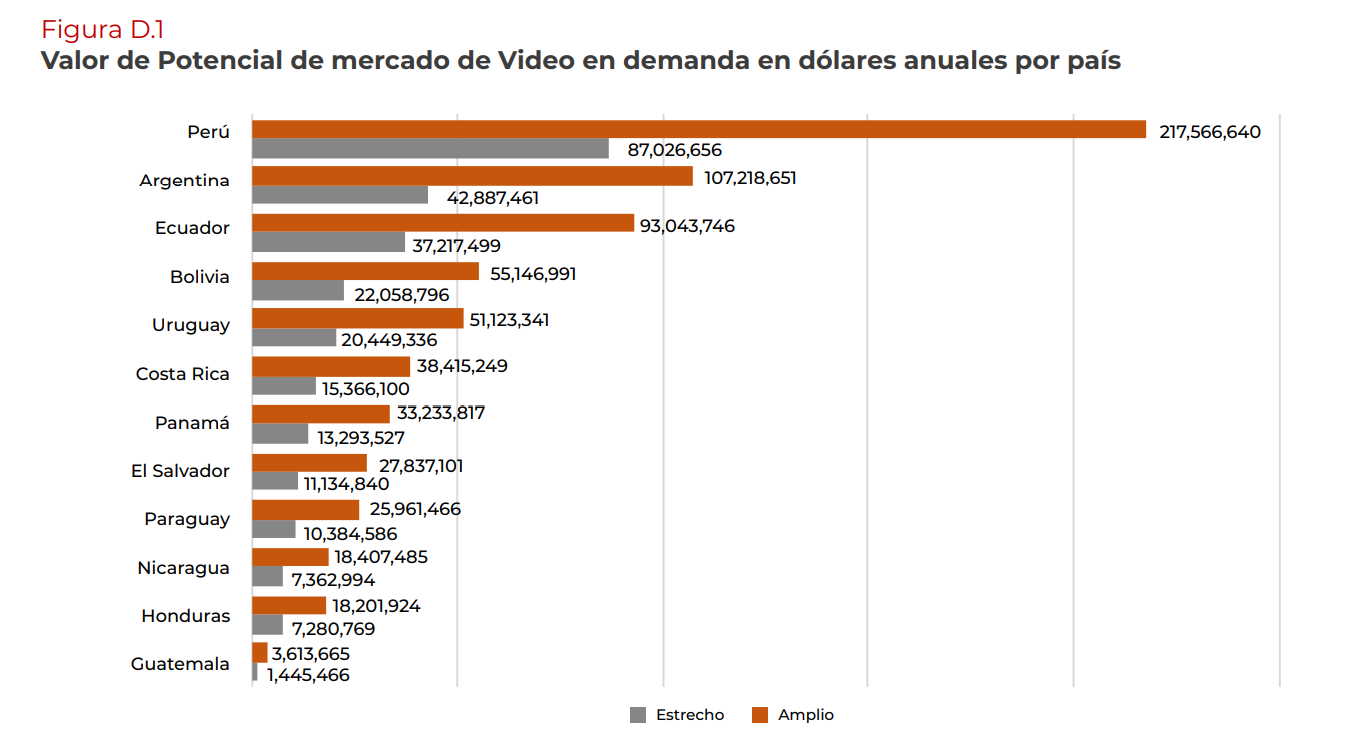 Estimación del potencial de mercado anual de video en demanda. Gráfico: cet.la